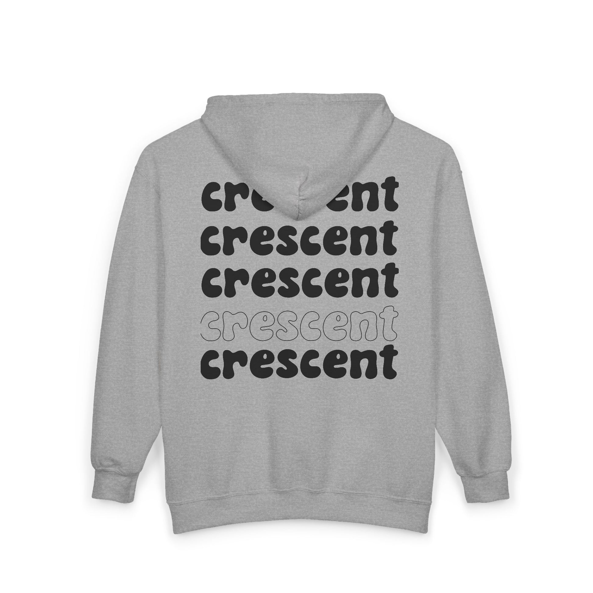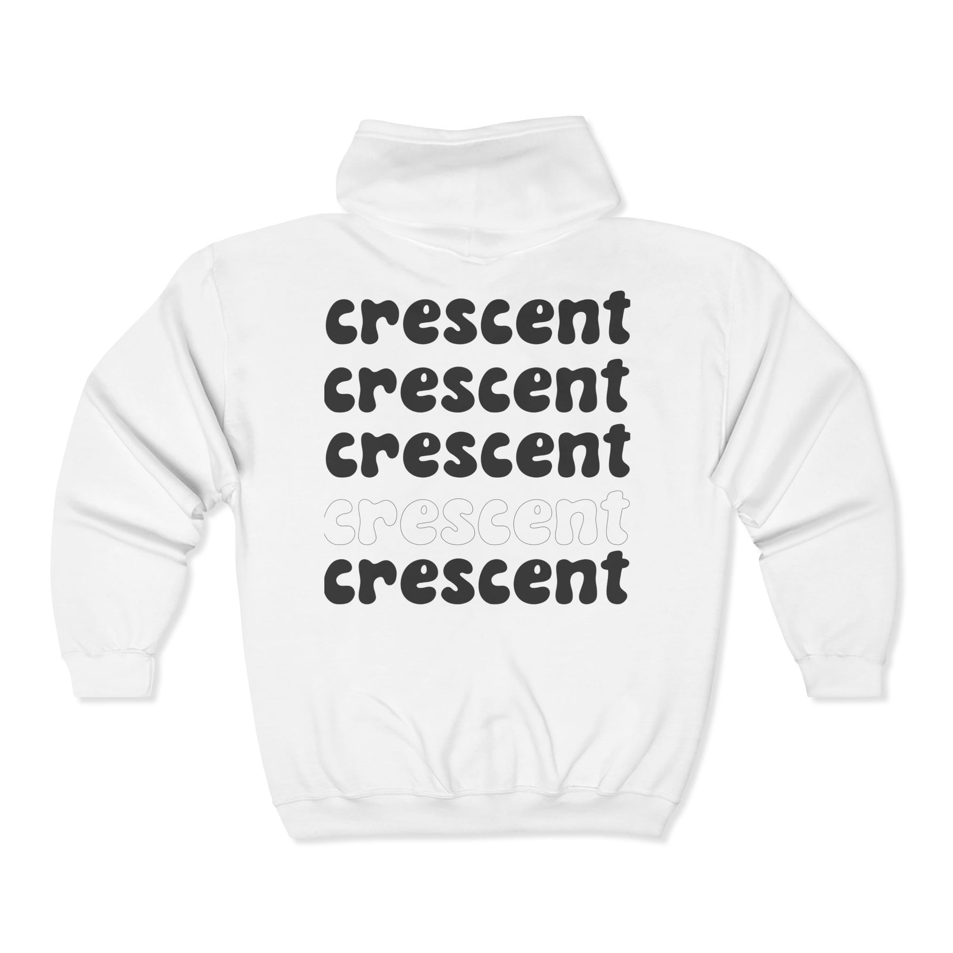 This classic zip-up hoodie brings quiet confidence to everyday wear. The soft 50/50 cotton-poly fabric and medium-heavy weight create a cozy, structured feel that holds shape and layers easily. A subtle embroidered crescent on the chest pairs with bold, rounded “crescent” lettering across the back for a low-key, modern vibe — the kind of piece you reach for when you want to be comfortable but still make a small, thoughtful statement. Spacious front pockets and an